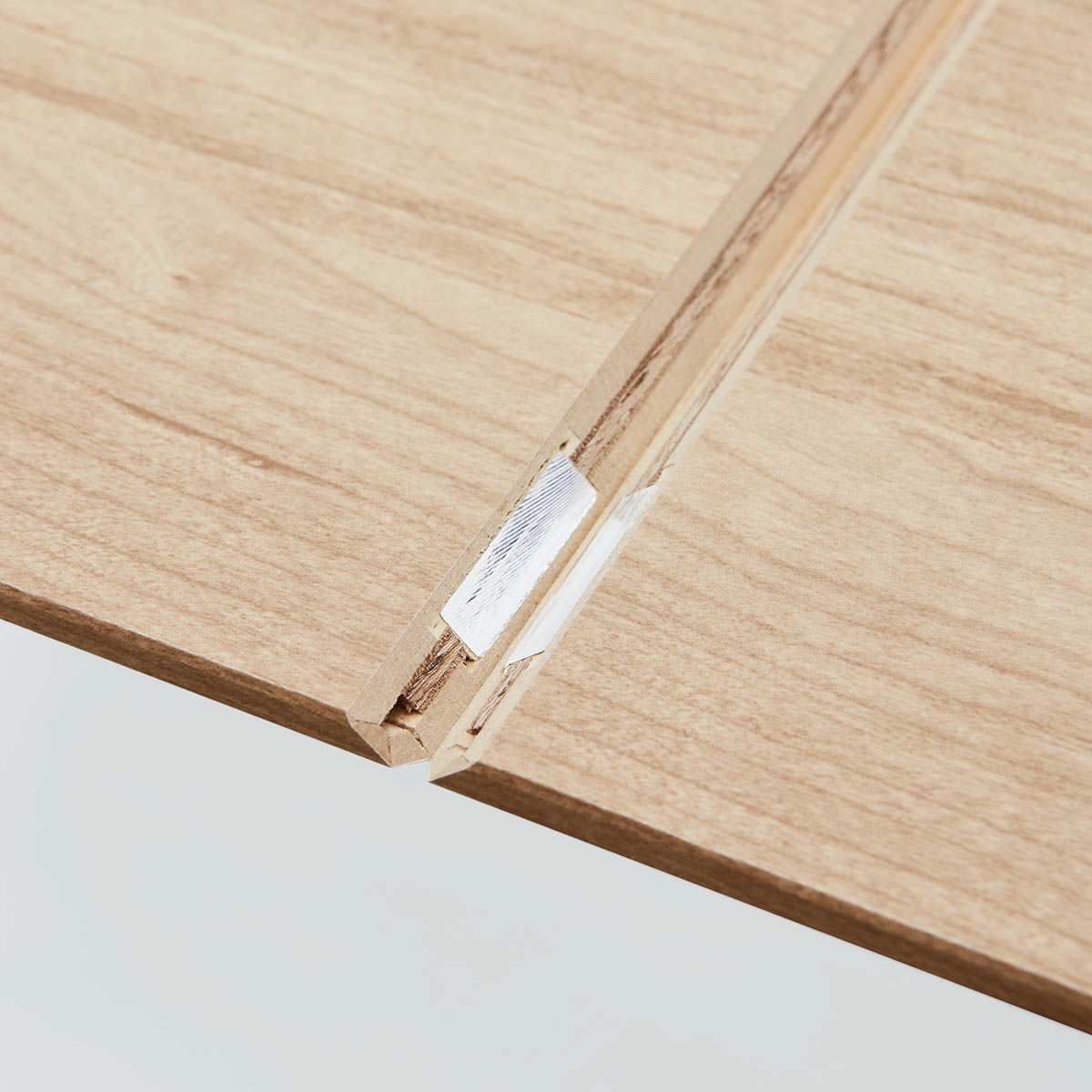 【内包された金属フレーム】 ボックスユニットの板には金属補強材が隠されています。90年以上の歴史を持つ家具・建具メーカー『トーマ』が生み出した「Vカット工法」を、V-TISS LIGHTのために更に応用開発しました。※浅型ボックスユニットは除く