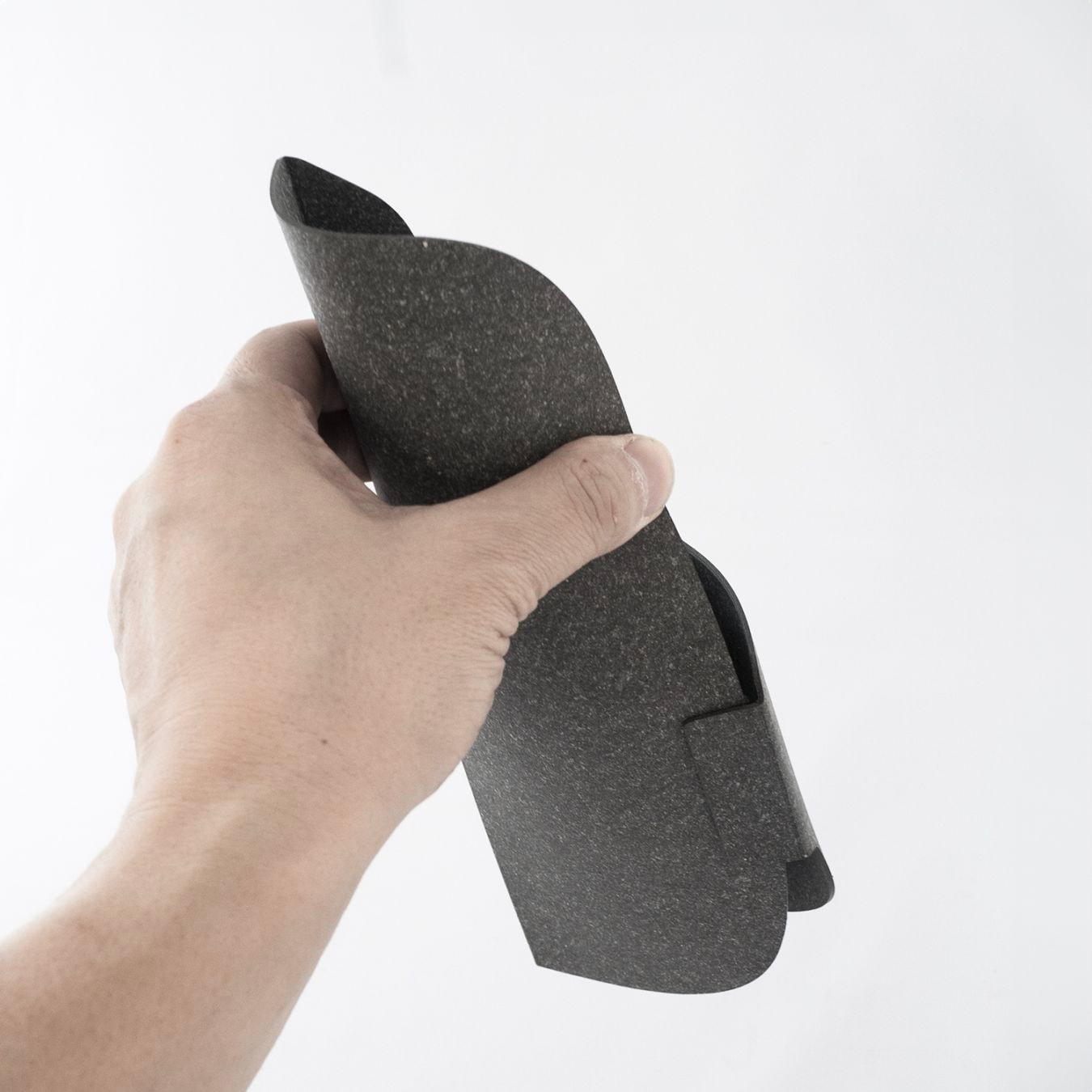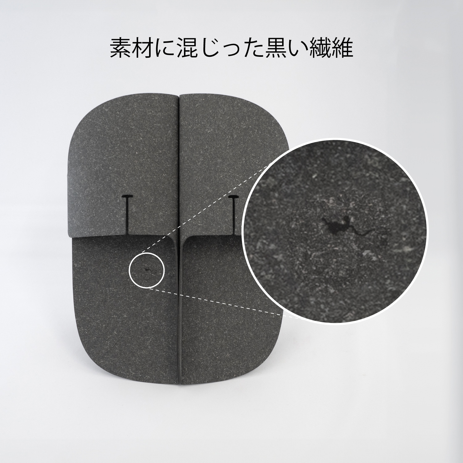 革製品の端材をリサイクルしたエコ素材。ゴム成分が約40%入っているので、しっかりとした質感です。