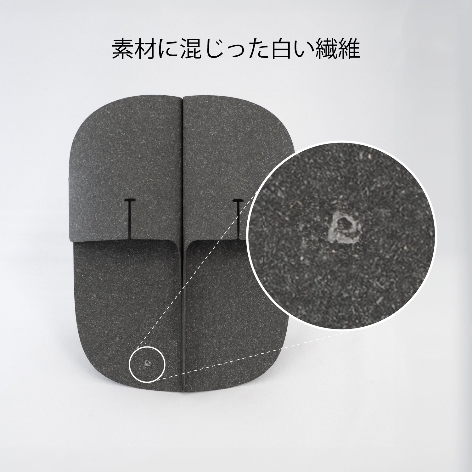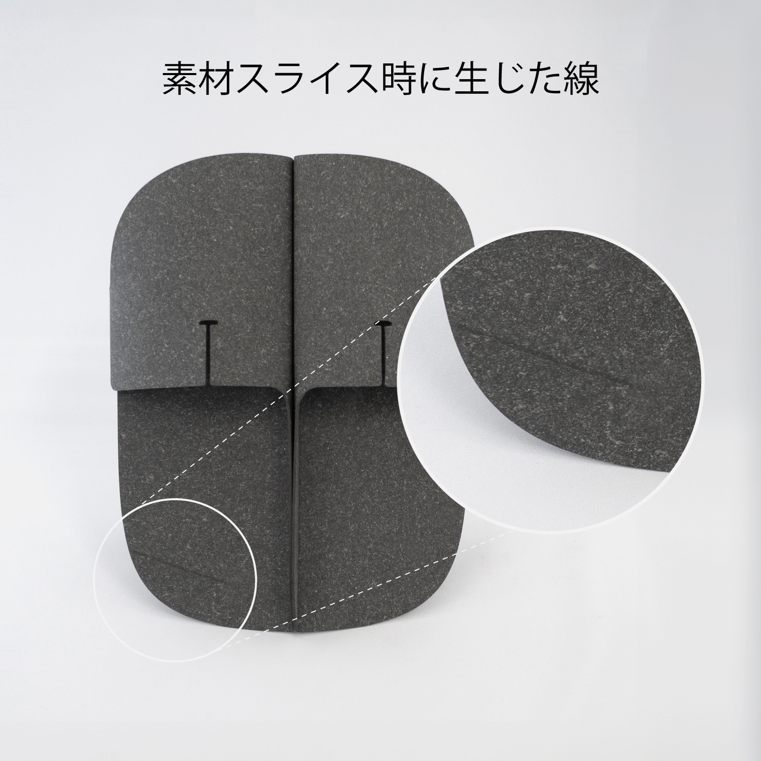 左右でひとつながりのスーパー楕円を描くフォルムが特徴。履いていない時の姿に着目し、空間に置かれた際の心地よい見た目をデザインしました。 左右それぞれ内側の部分にある25mmの立ち上がりは、履いている時には綺麗な形を保ちながら、揃えて置きたくなる所作を促す工夫にもなっています。